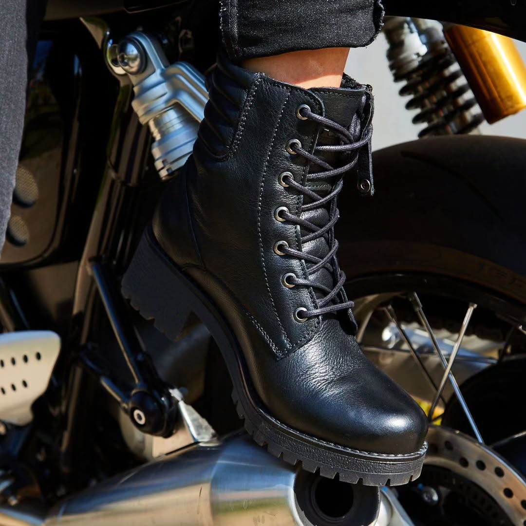 The Misty is constructed with every detail in mind. Made of a full-grain leather upper and High-Tex membrane, it has a zipper closure for easy removal but laces to retain the classic motorcycle boot look. The rubber sole has all the grip & heft you need on the road while still being light enough to be your favorite boot to wear off the bike.