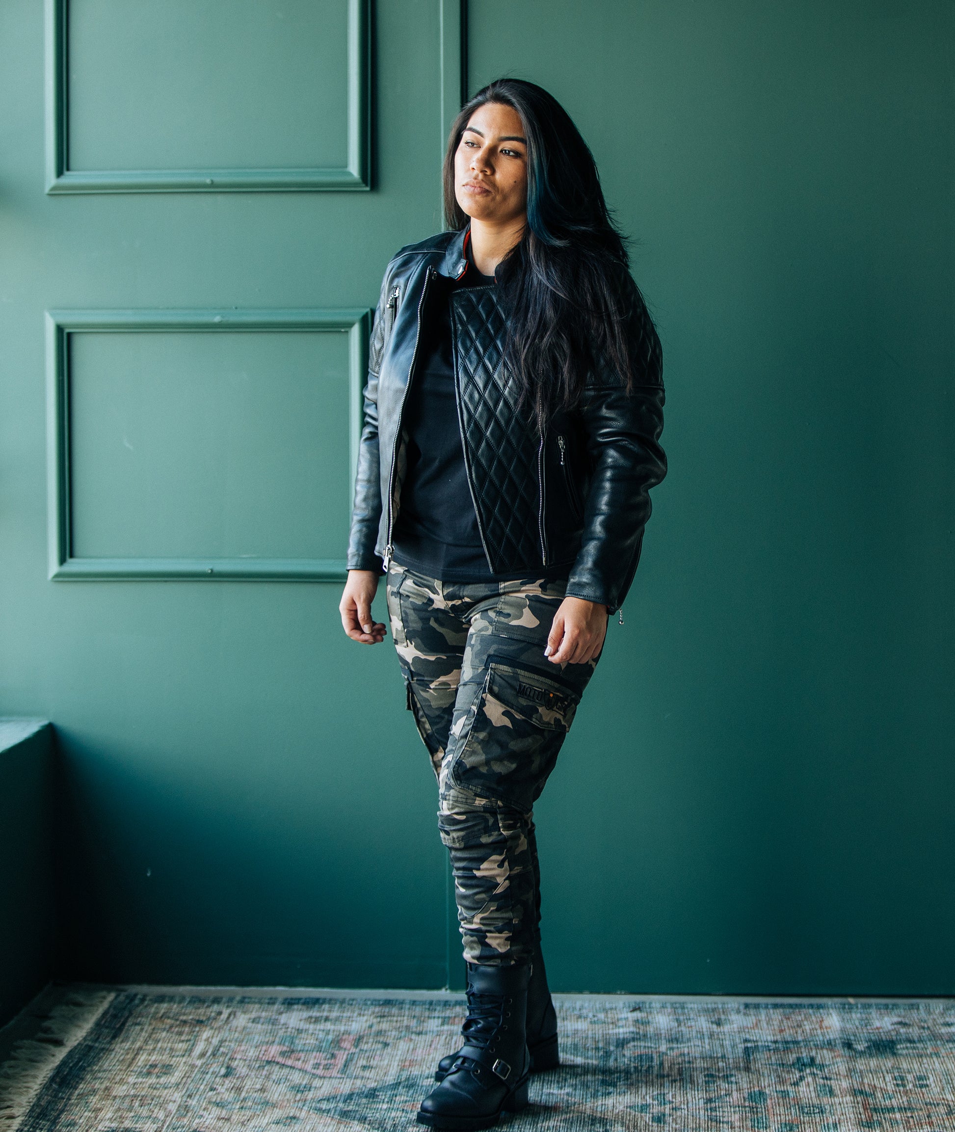 A classic motorcycle jacket, the Bobber is a double-breasted jacket with gorgeous detailing including double-stitched diamond-quilted panels, and elasticated ribbing and side buckles for both comfort and fit. It's champagne gold satin lining and butter-soft tan suede trim adds to it's uncompromising quality and style.