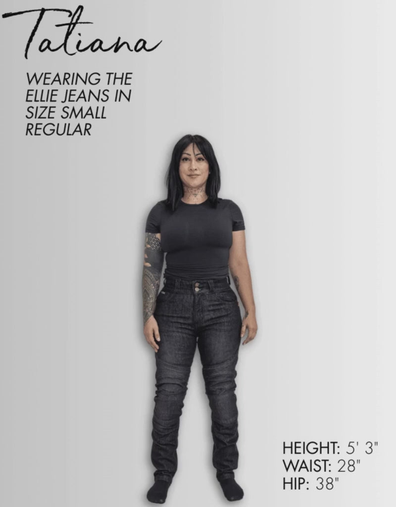 The Ellie Jeans are the cut you love in a classic jean, but will the strength of AA rated protection and single layer protection to keep the fit slim and streamlined.